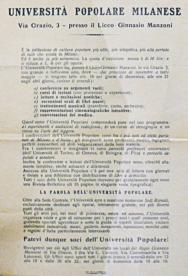 La cultura Milanese e l'Università Popolare